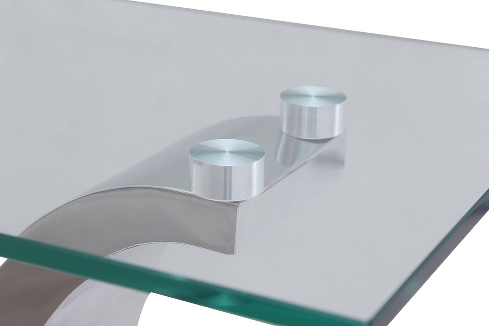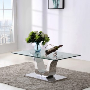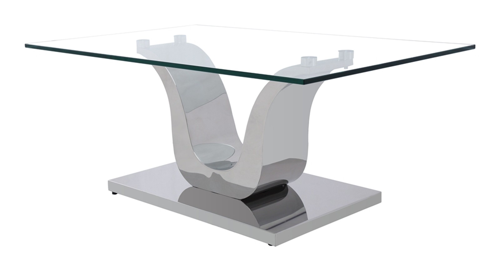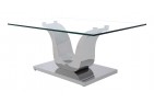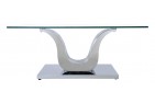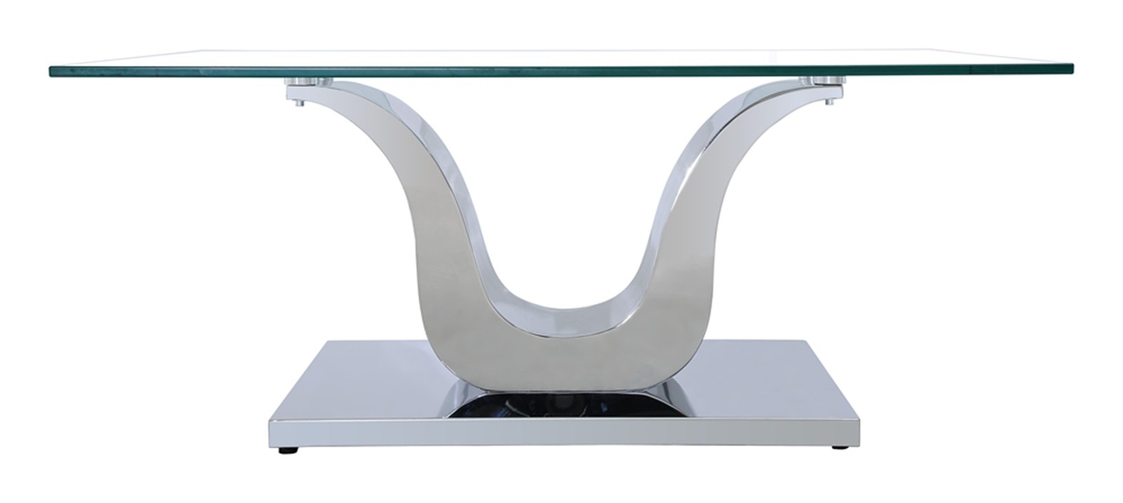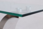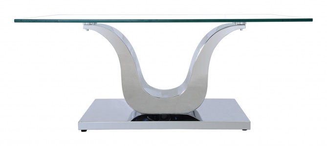 The Alexandria glass and chrome coffee table features a beautiful ‘U’ shaped stainless steel pedestal support which is mounted on to a Stainless steel base.
