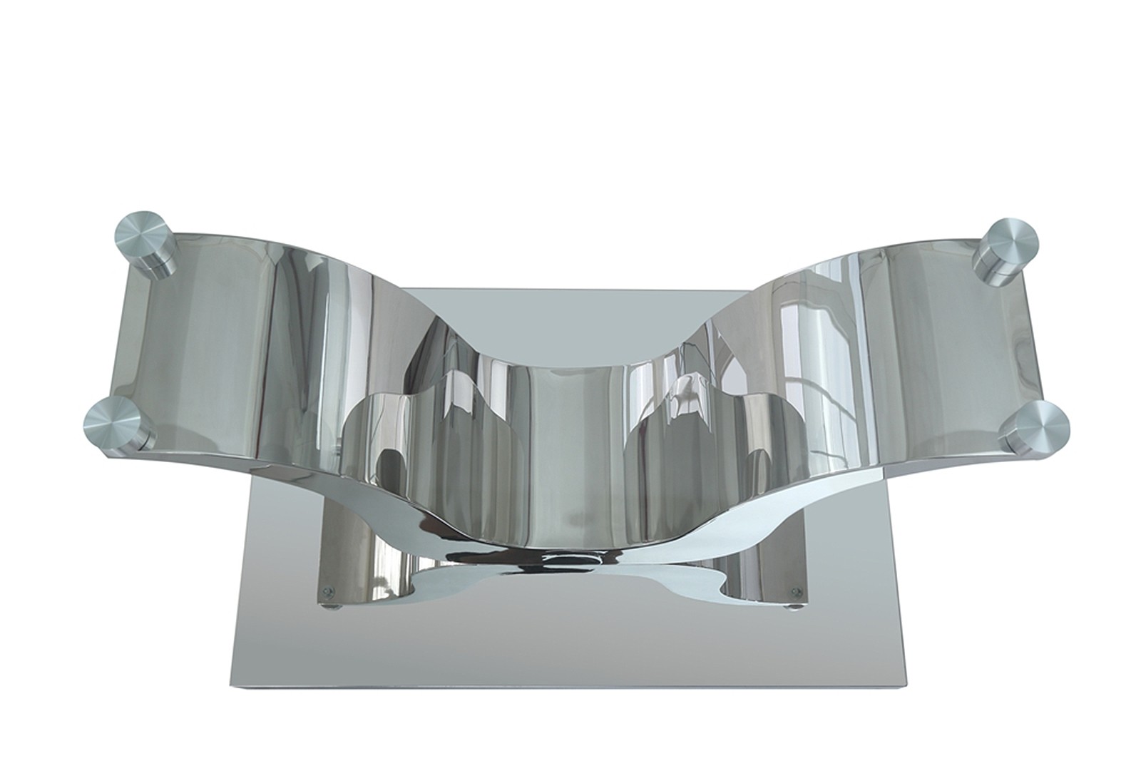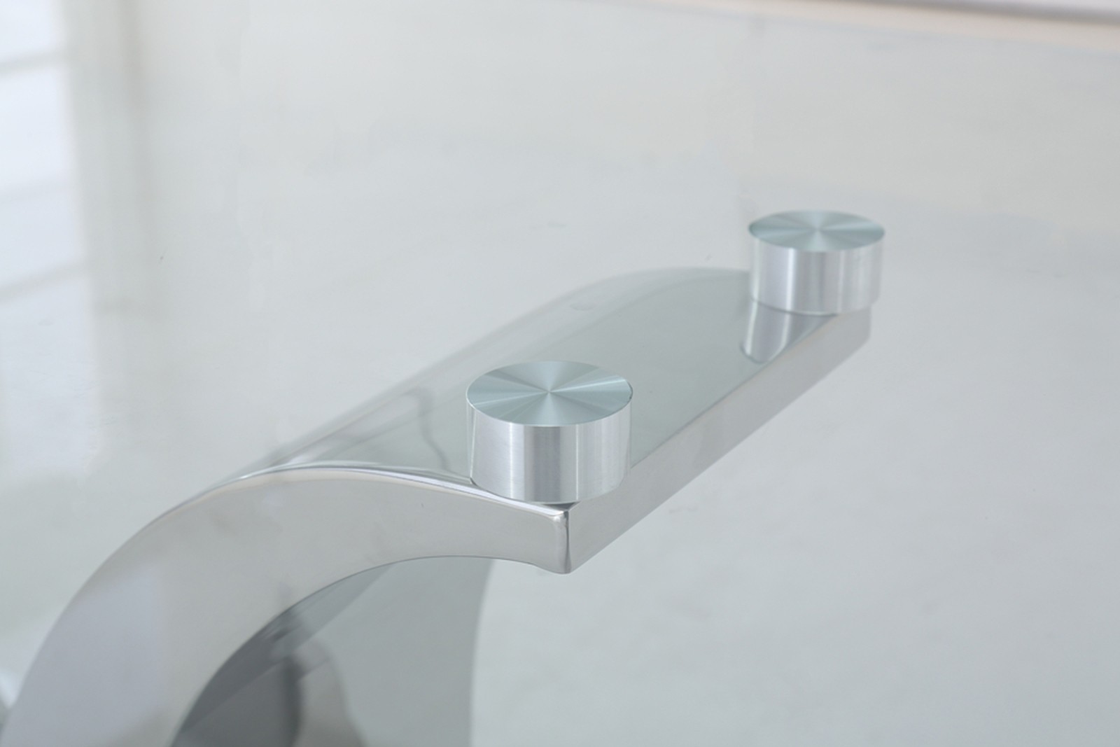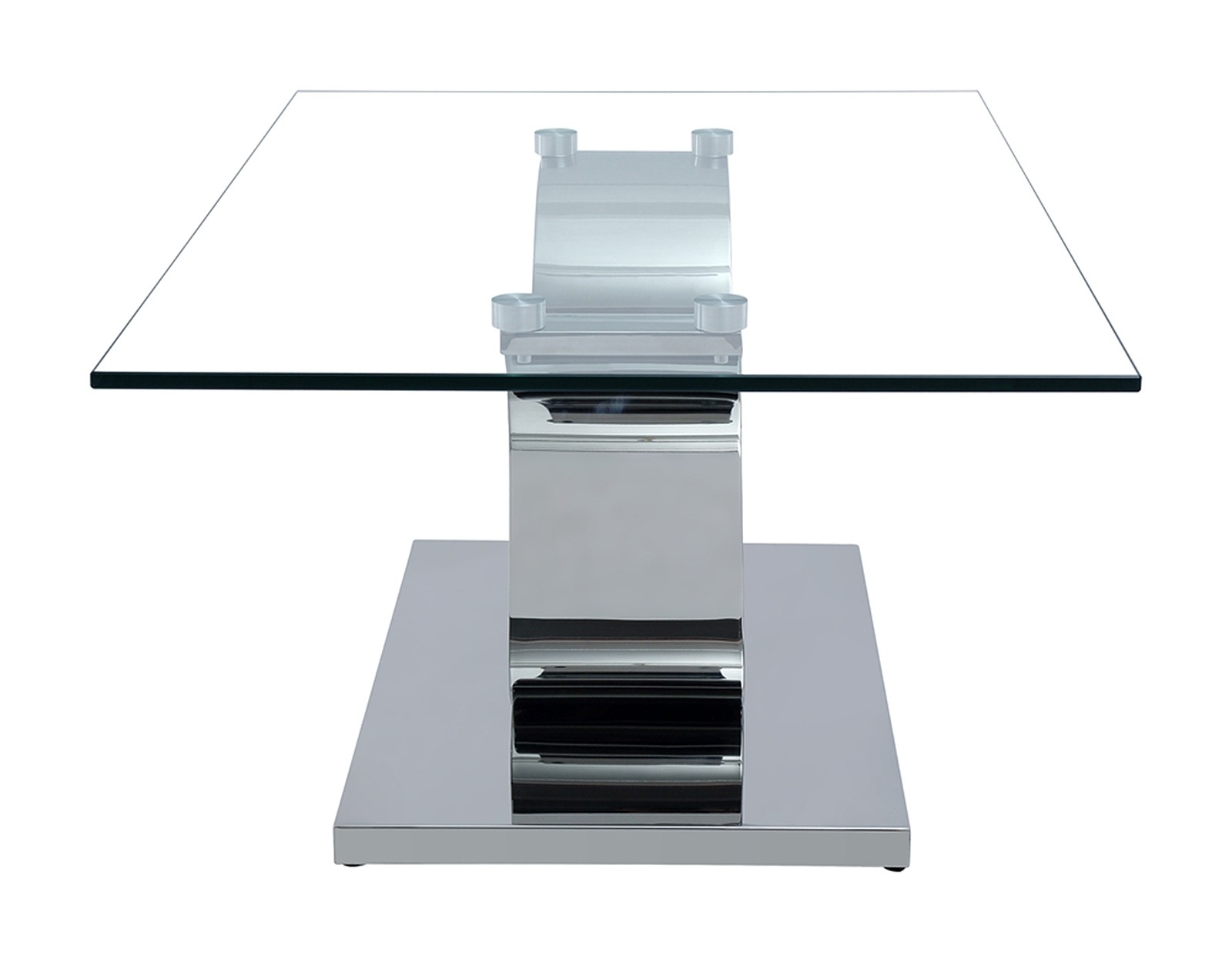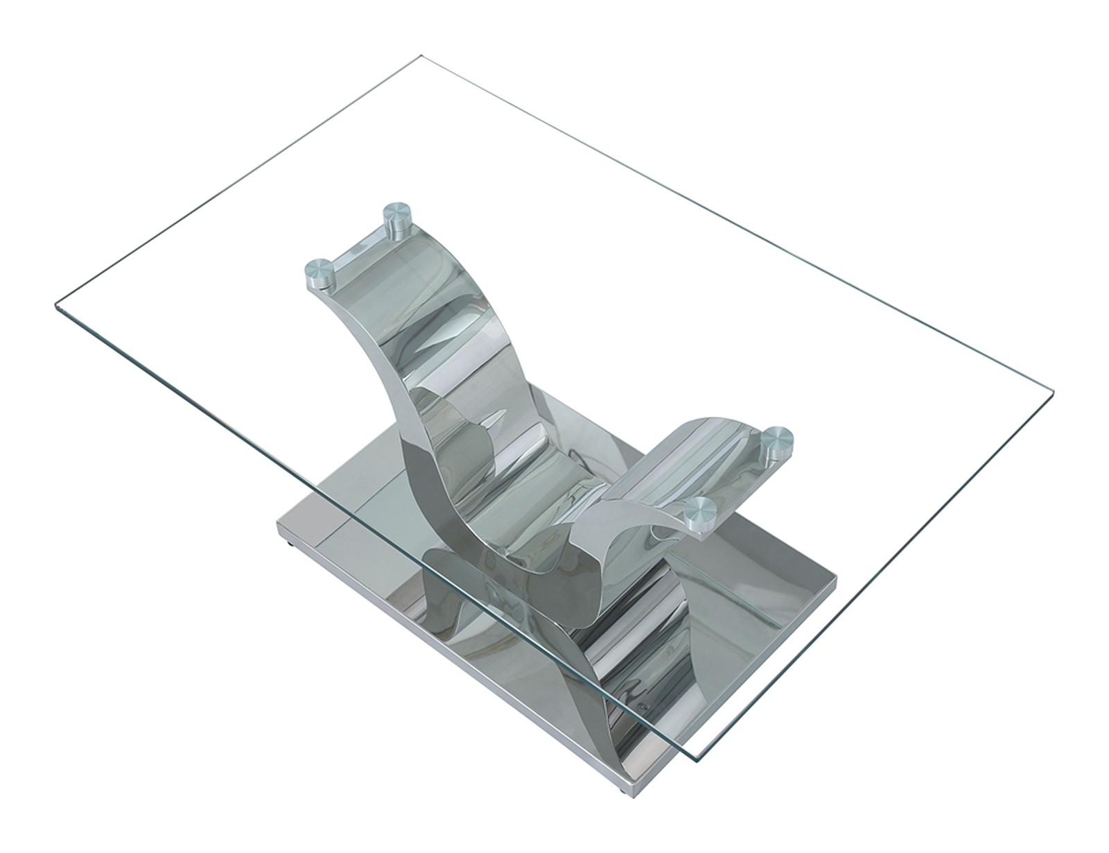 The Alexandria glass and chrome coffee table features a beautiful ‘U’ shaped stainless steel pedestal support which is mounted on to a Stainless steel base.