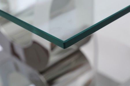 This dining table is topped with a 12 mm thick clear tempered glass with bevelled edges for a more modern elegant finish.