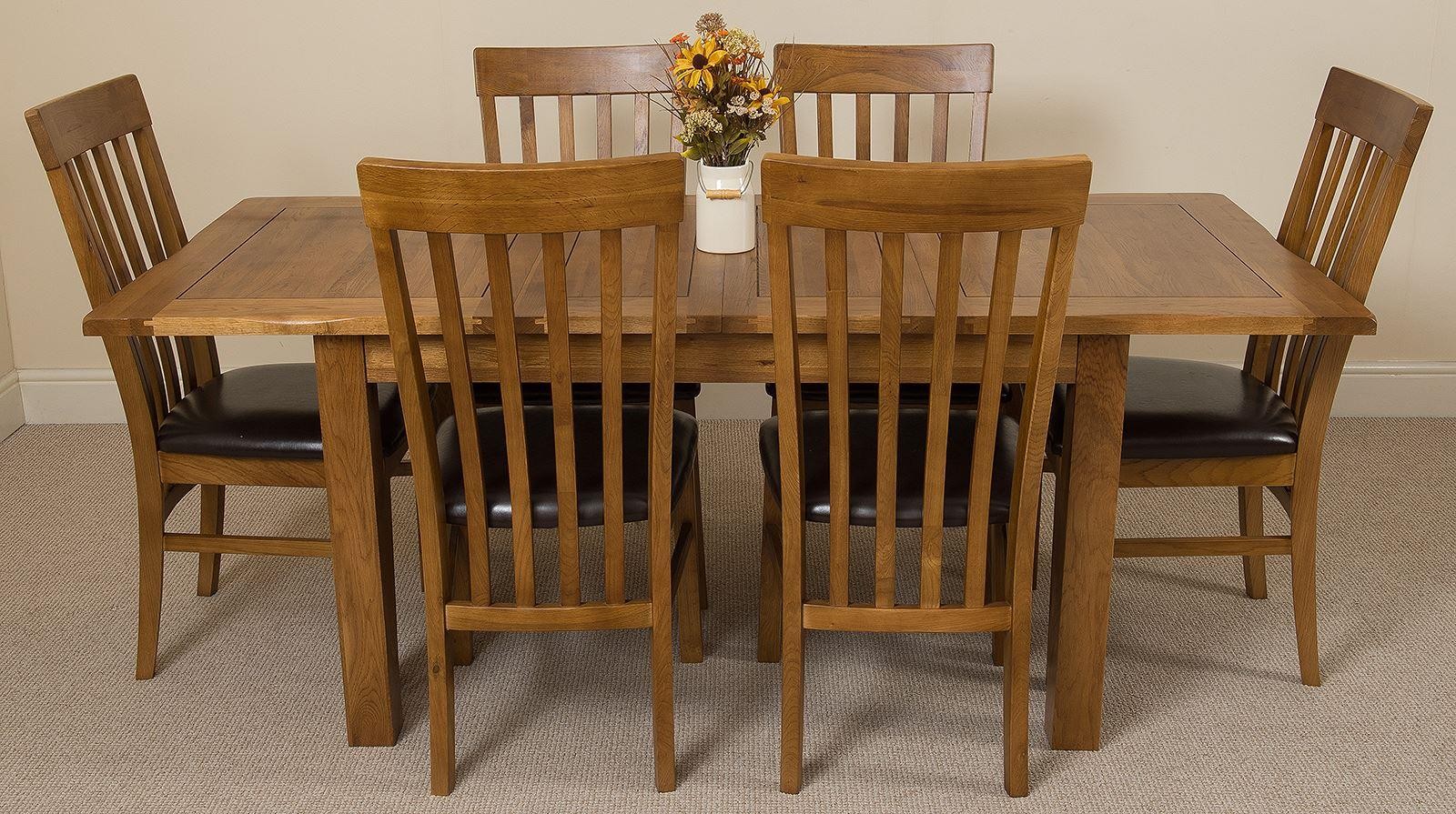 Cotswold Rustic Solid Oak 132cm-198cm Extending Farmhouse Dining Table with 6 Harvard Dining Chairs [Rustic Oak and Brown Leather]