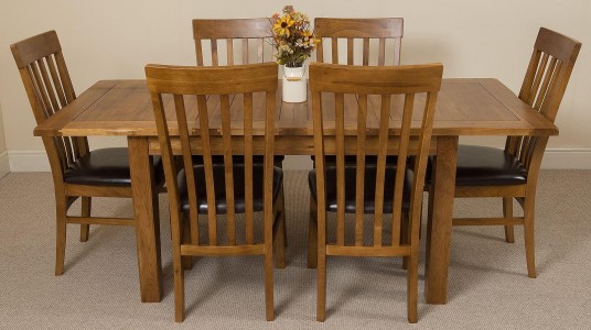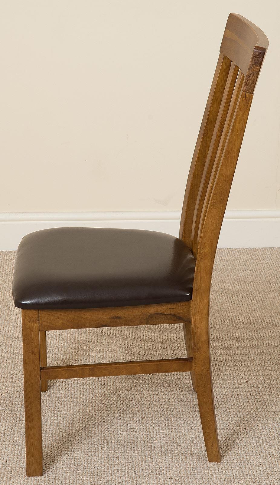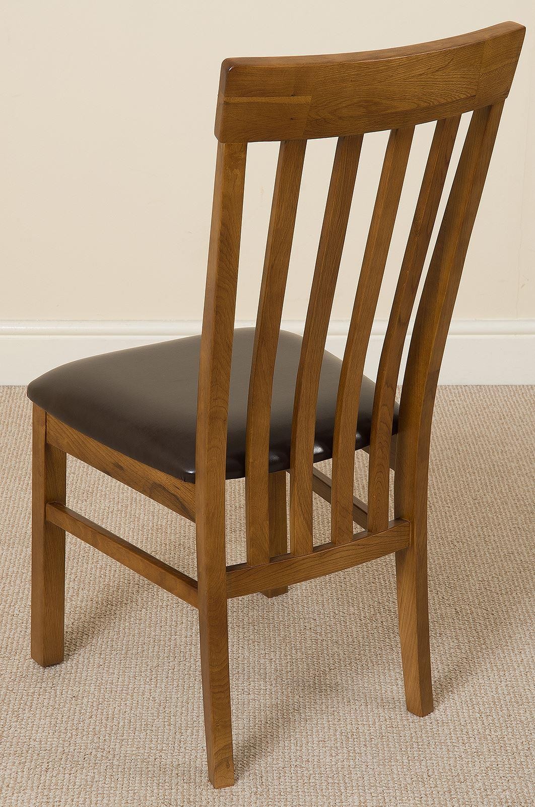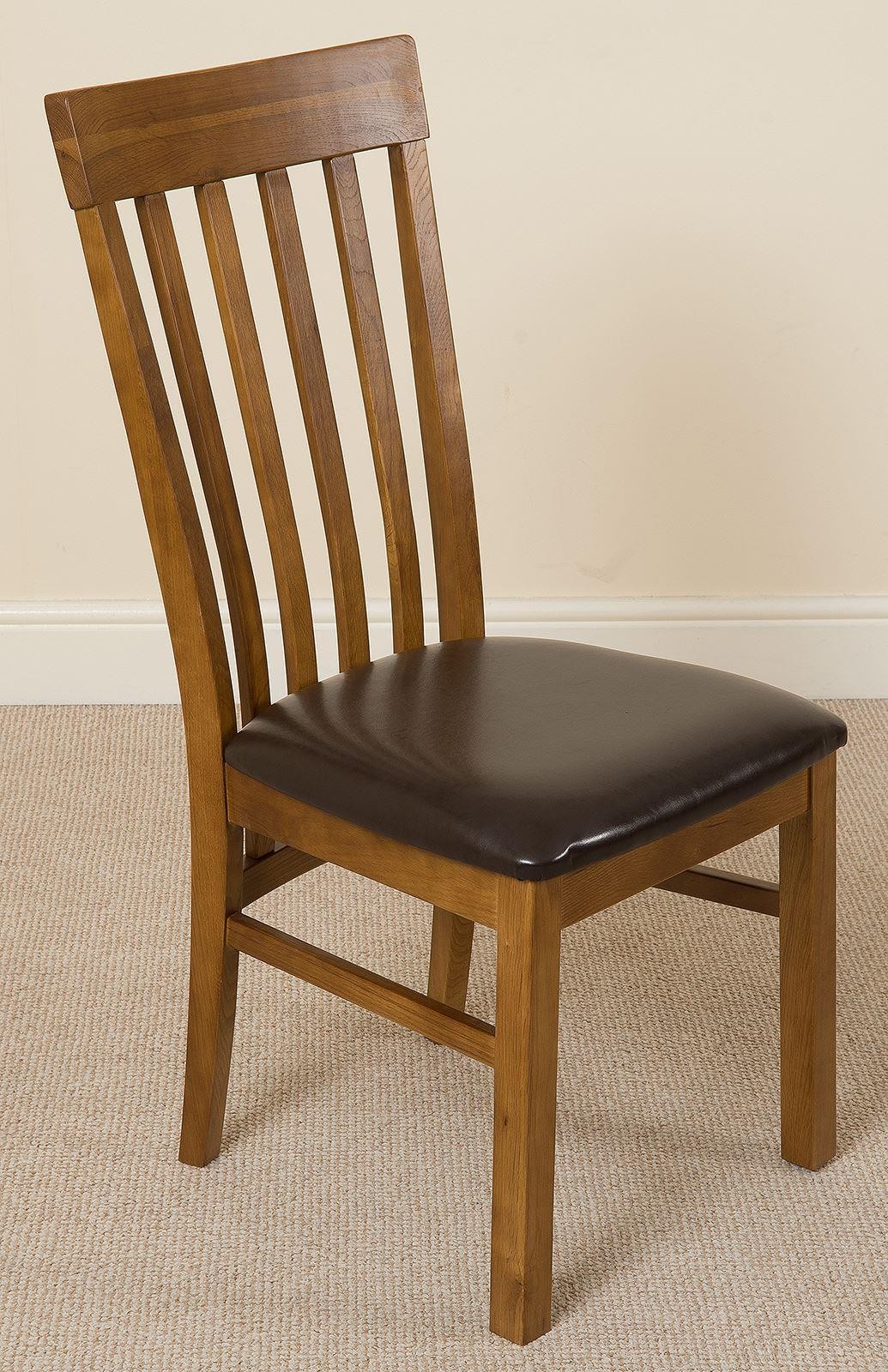 The very popular Harvard chairs are made of 100% solid Rustic oak and feature a high back design with a dark brown premium bonded leather seat. The seat is padded for comfort, making this chair ideal for entertaining guests, significantly enhancing your dining experience.