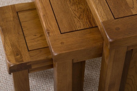 Cotswold Rustic Solid Oak Nest of Tables [3 Tables]
