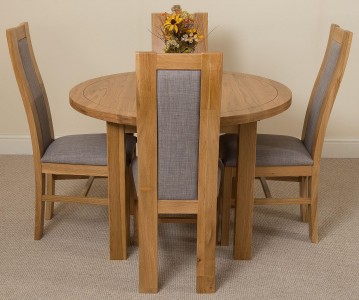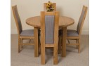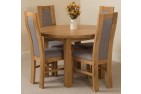 Edmonton Solid Oak Extending Oval Dining Table With 4 Stanford Solid Oak Dining Chairs [Light Oak and Grey Fabric]