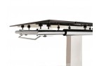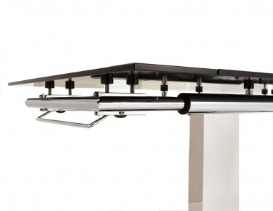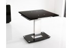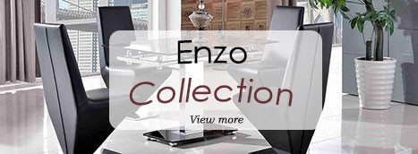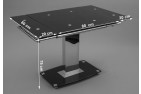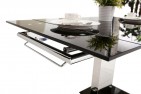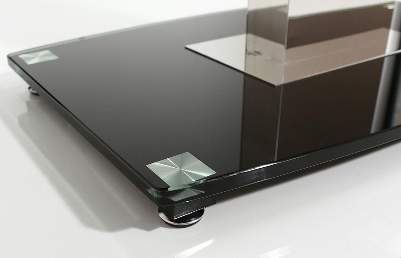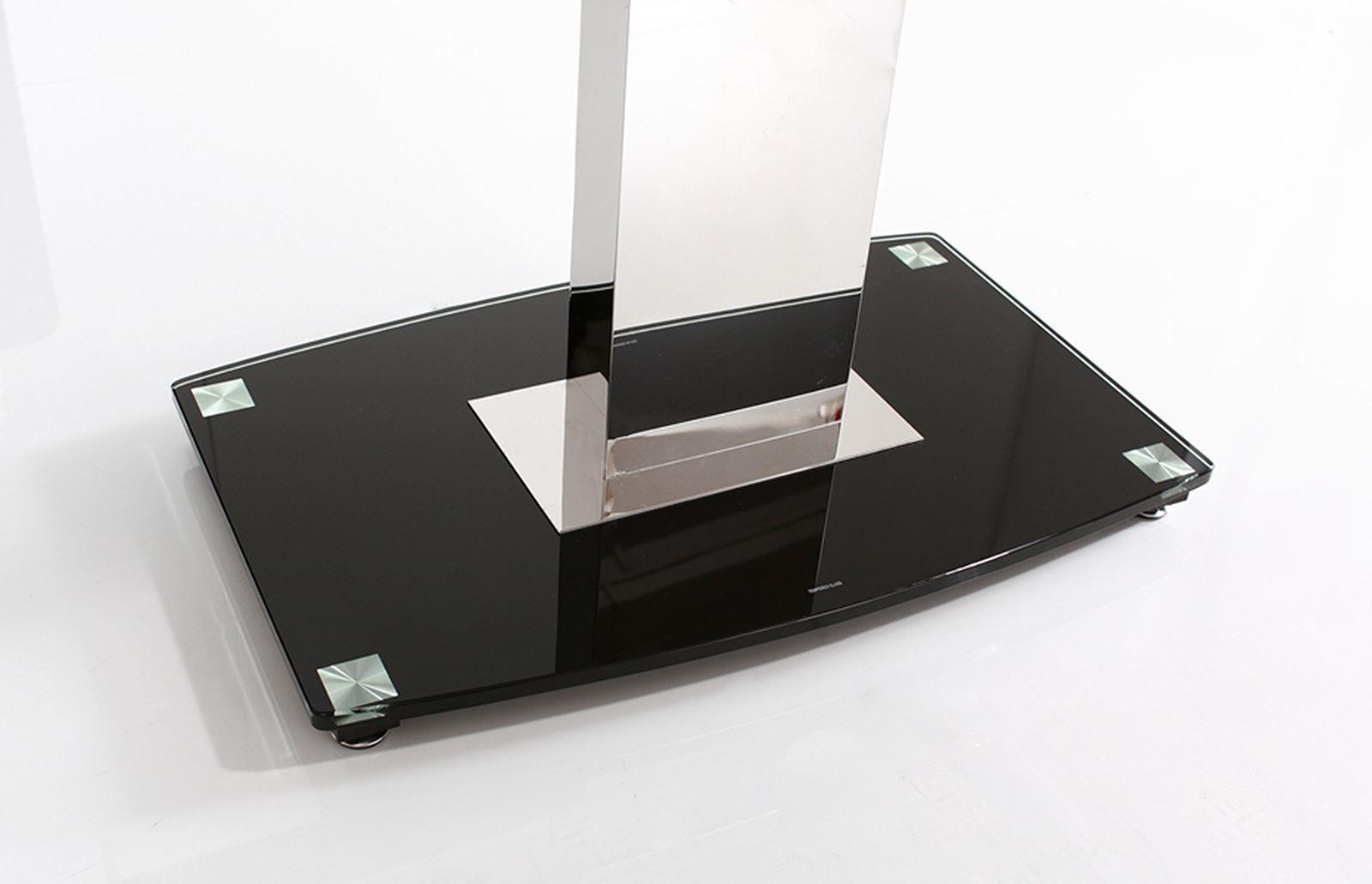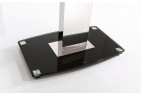 The Enzo is made of 12mm thick tempered glass with a central stainless steel pillar frame set on top of a black glass base. The glass on both the table top and base is finished with bevelled edges.