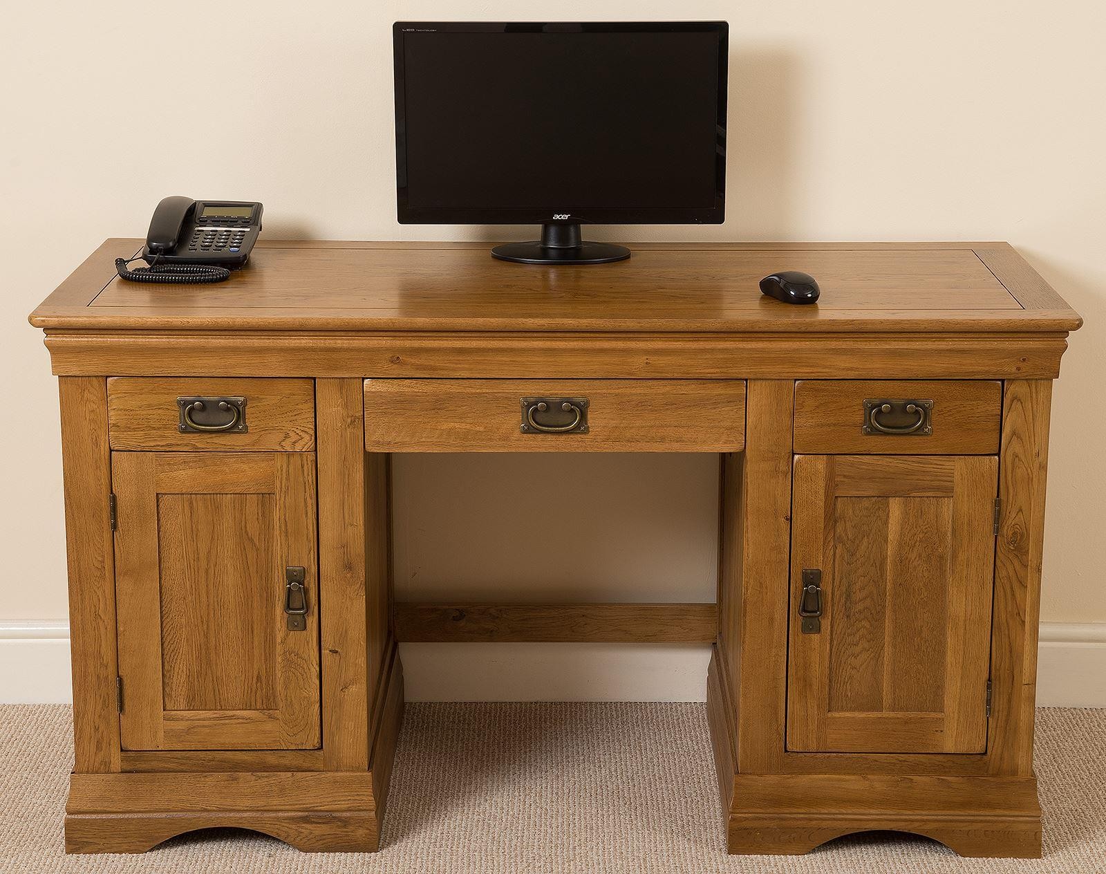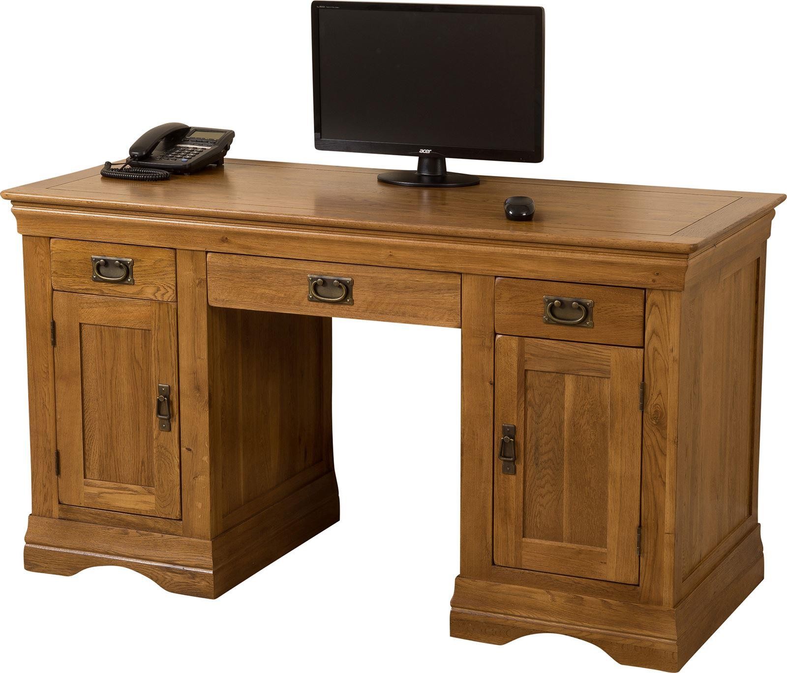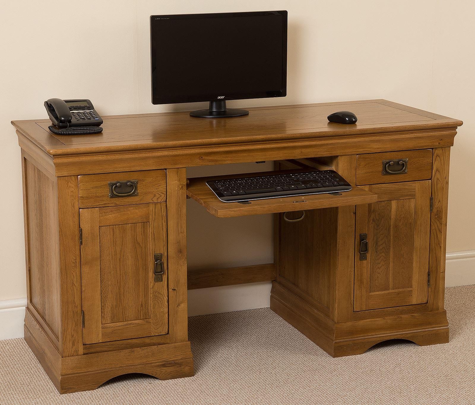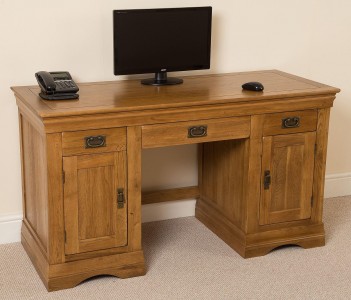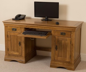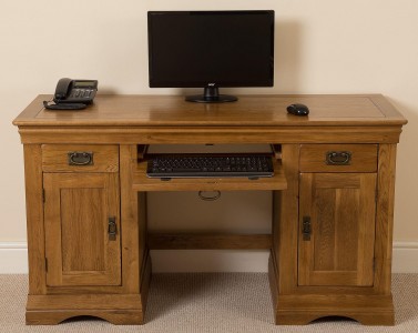 As gorgeous as it is functional, French Chateau has thought of everything, including an exit hole for cables, a cabinet ideal for keeping your PC tower hidden away, a fantastic keyboard tray in the center… all while draped in a rustic finish darker than our natural oak ranges.