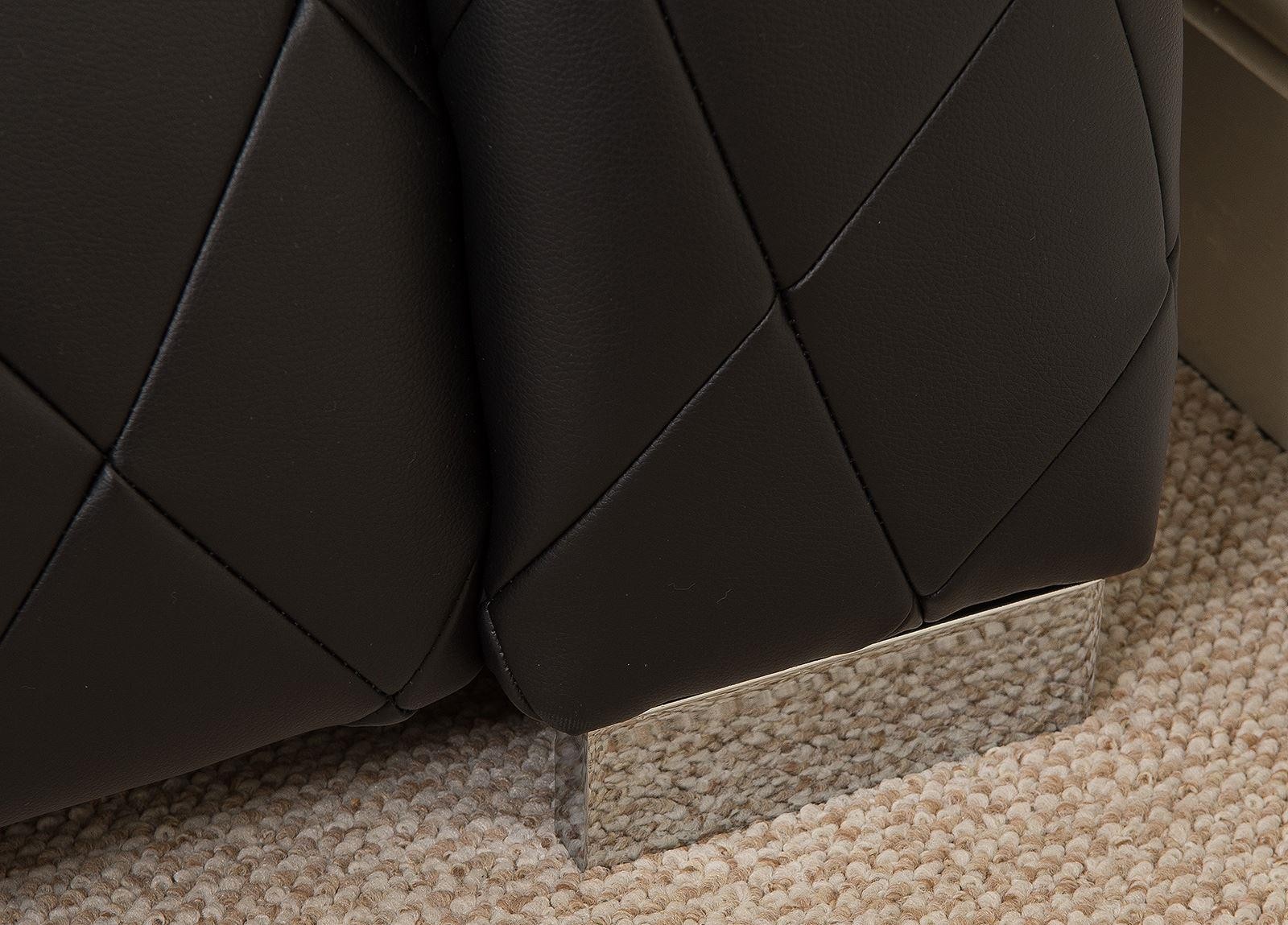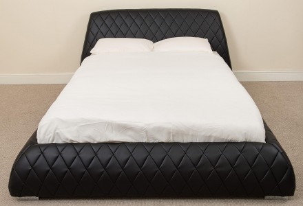 An absolutely stunning European designer bed, featuring diamond quilted stitch design, low profile footend and stainless steel feet to add the perfect finishing touch. A truly magnificent luxury piece for any bedroom. Upholstered in black faux leather.