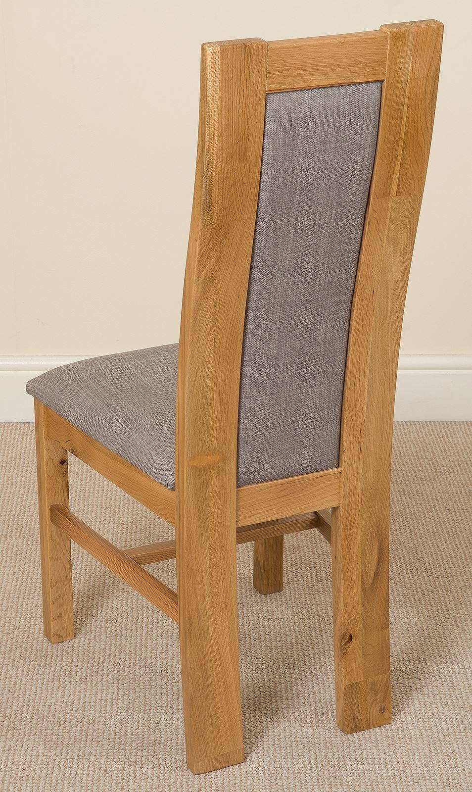 The very popular Stanford chairs are made of 100% solid oak and feature a high back design with a light grey premium fabric seat & back rest. The seat is padded for comfort, making this chair ideal for entertaining guests, significantly enhancing your dining experience.