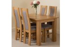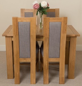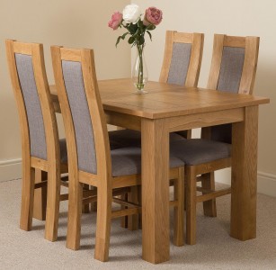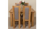 Hampton Solid Oak 120-160cm Extending Dining Table with 4 Stanford Solid Oak Dining Chairs [Light Oak and Grey Fabric]