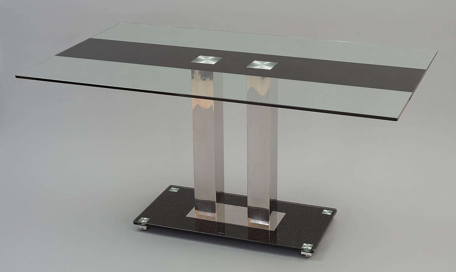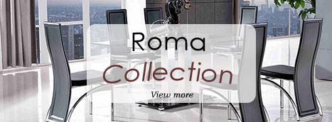 The Roma features a stylish black centre table top black glass base. The glass on both the table top and base is finished with a bevelled edge and subtly rounded corners for safety. The table will seat up to 6 people.