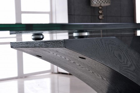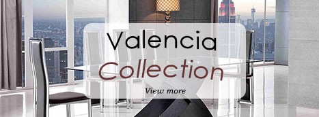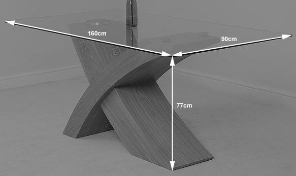 The Valencia dining table is a stunning combination of glass and wood with its feature piece ‘X’ design base and 12mm thick glass top. The clear glass top creates a sense of space in addition to revealing the full beauty of the chunky ‘X’ shaped frame, whilst the natural wood effect adds a touch of warmth and cosiness to the overall look. The Valencia dining table is available in 2 sizes, 160cm x 90cm (small) and 200cm x 100cm (large). It also comes in 2 colours, Natural Oak or Black. The small table can comfortably seat up to 6 people and the large can seat up to 8. The glass is firmly attached to the base using contemporary stainless steel metal discs which screw into the base. The table also has adjustable feet hidden underneath the base making it possible to adjust the table on uneven floors. Accompanying the table are the Elsa faux leather dining chairs available in black, brown or ivory. The Elsa dining chairs feature a contemporary wave back design with a chrome frame around the back rest and chrome steel legs. The seat and back rest are padded. Key Features: •12mm thick tempered glass top •Tempered glass used for safety and extra strength. Apart from the improved strength tempered glass dramatically reduces the risk of personal injury in the very rare instance of breakage. •Polished stainless steel connectors •All edges are polished and bevelled for a perfect finish and added assurance of safety. •This item has been designed with minimal home assembly needed to aid delivery to your home. Full instructions will be provided to ensure assembly process is straight forward