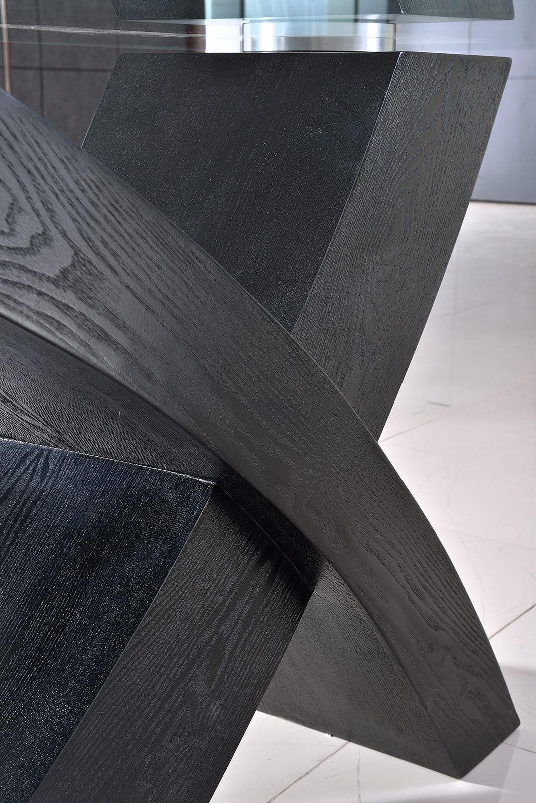 The Valencia dining table is a stunning combination of glass and wood with its feature piece ‘X’ design base and 12mm thick glass top.