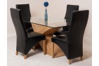 Valencia Oak 160cm Wood and Glass Dining Table with 4 Lola Dining Chairs [Black Leather]