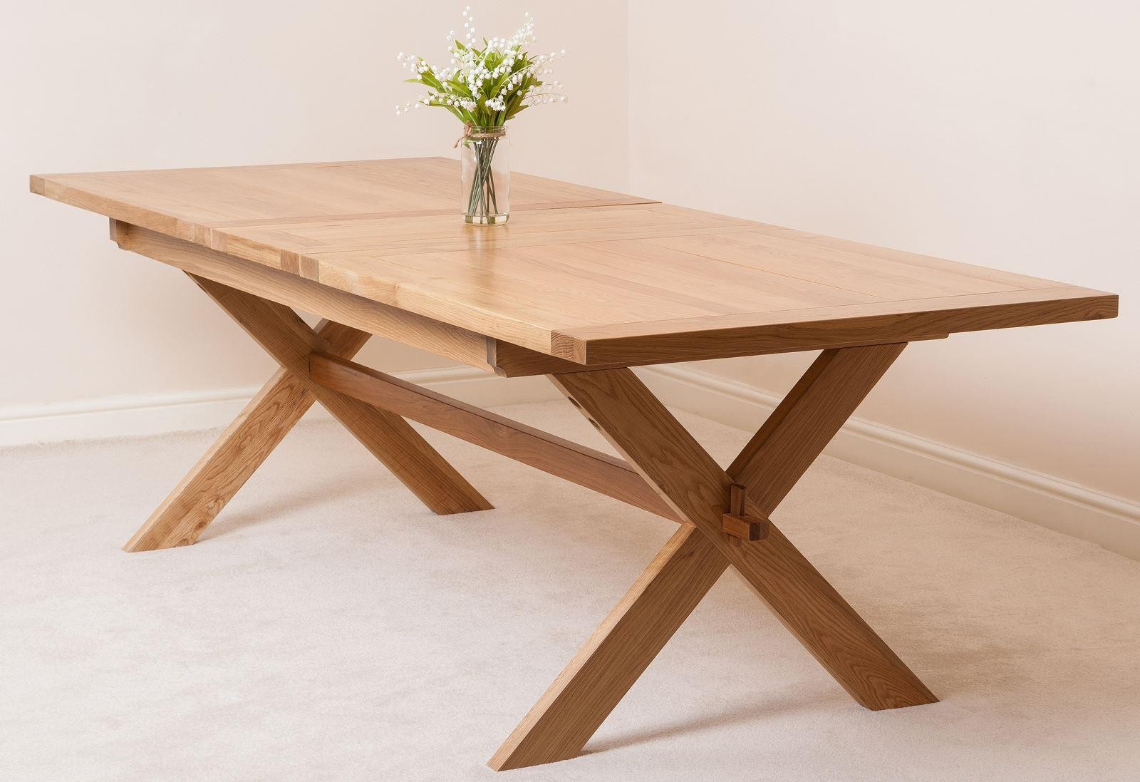Made entirely of 100% solid oak timber the Vermont crossed leg dining table has a unique style that blends both contemporary and traditional.