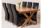Vermont Solid Oak 200cm-240cm Crossed Leg Extending Dining Table with 6 Lola Dining Chairs [Ivory Leather]