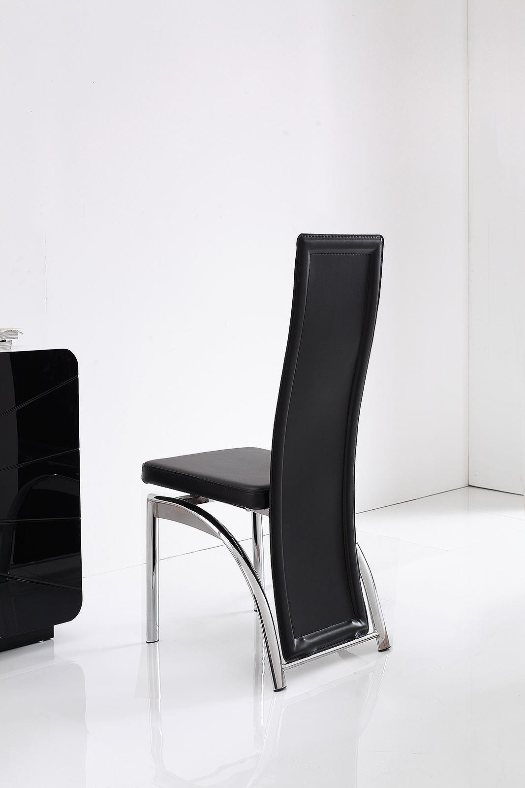 The Alisa faux leather dining chairs available in black, brown or ivory. The Alisa dining chairs feature a contemporary wave back design and padded seat with chrome steel legs