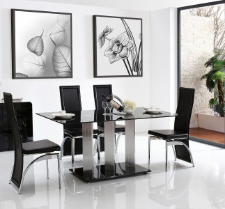 Vienna Black Glass 160cm Dining Table with 6 Alisa Dining Chair [Black]